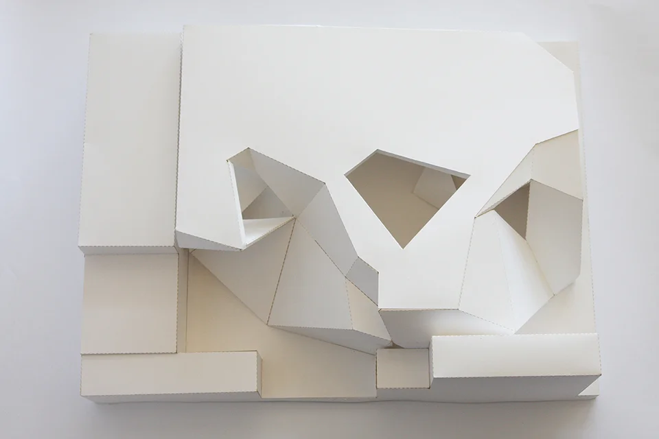 The form of the distorted cube allows me to start investigating different ways of diverting perspectives. It allows me to look at human perception of the city as a series of solid-void conditions. Voids appear in between misaligned solids, which start to act as view/path diverters.
